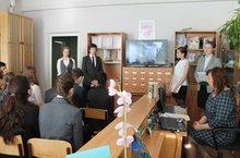 11 апреля библиотекарь гимназии Шайдуллина Резеда Рафаиловна провела для учащихся 8В класса библиотечный урок - литературно-музыкальный вечер «Никто не забыт, ничто не забыто», посвященный 70-летию Победы в Великой Отечественной войне 1941-1945 гг. Ведущими мероприятия стали ученицы 8В класса Крутикова Настя и Вершинина Юля. Резеда Рафаиловна постаралась вовлечь самих учащихся в подготовку и проведение мероприятия, ребята подготовили стихотворения, прочли их перед одноклассниками. Материал урока нашел отклик в сердцах ребят, они внимательно слушали рассказ Резеды Рафаиловны, с интересом смотрели видеосюжеты.