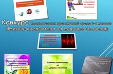 Среди 3 и 4-х классов (учитель Костин А.В.) был проведён конкурс компьютерных презентаций на тему «Влияние компьютера на здоровье человека». Данное мероприятие было проведено в рамках декады предметов естественно-математического цикла. При оценивании работ учитывались соответствие теме, оформление и самостоятельность выполнения.