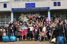 Родители вместе с учениками очистили пришкольную территорию от мусора, листвы, веток; окопали клумбы и вокруг деревьев; побелили яблони и тополя; подмели всю площадку у гимназии.