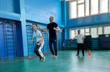 В 7.55 звенит звонок и приглашает гимназистов на утреннюю зарядку, которые все классы в гимназии делают с удовольствием.
