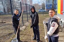 На уроке технологии мальчики 6х классов приняли участие в благоустройстве территории гимназии в рамках двухмесячника "Эковесна-2025".