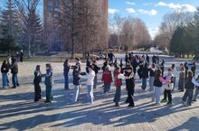 Учащиеся 8 класса принимают участие в репетиции Пролога, посвящённого празднованию 80-летия Великой Победы!