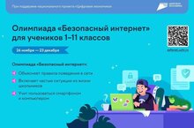 Онлайн-олимпиада продлится до 23 декабря для учеников 1-11 классов. Она направлена на повышение уровня киберграмотности. Школьники смогут проверить и улучшить свои навыки безопасного пользования интернетом и цифровыми устройствами на образовательной платформе Учи.ру.