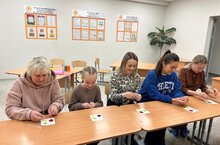 Мастер-класс увлёк не только мам, но и девочек-старшеклассниц. Все участники успешно справились с вязанием шарфа, который остался им в подарок. Спасибо большое Ирине Михайловне. Было очень интересно.