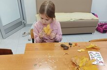 Воспитанники интерната создают интересные композиции их природного материала (шишек, листьев, ягод)