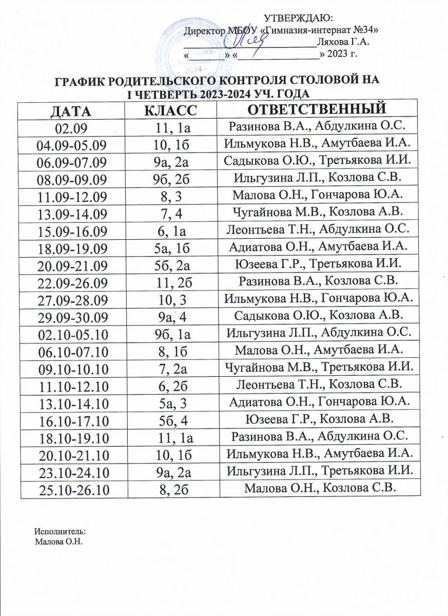 График бракеража родителей на 1 четверть 2024-2025 уч.г.