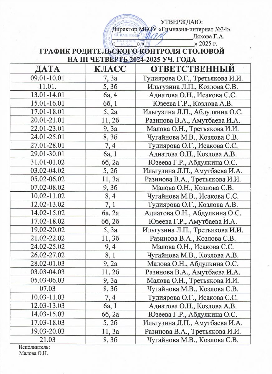 График бракеража родителей на 3 четверть 2024-2025 уч.г.