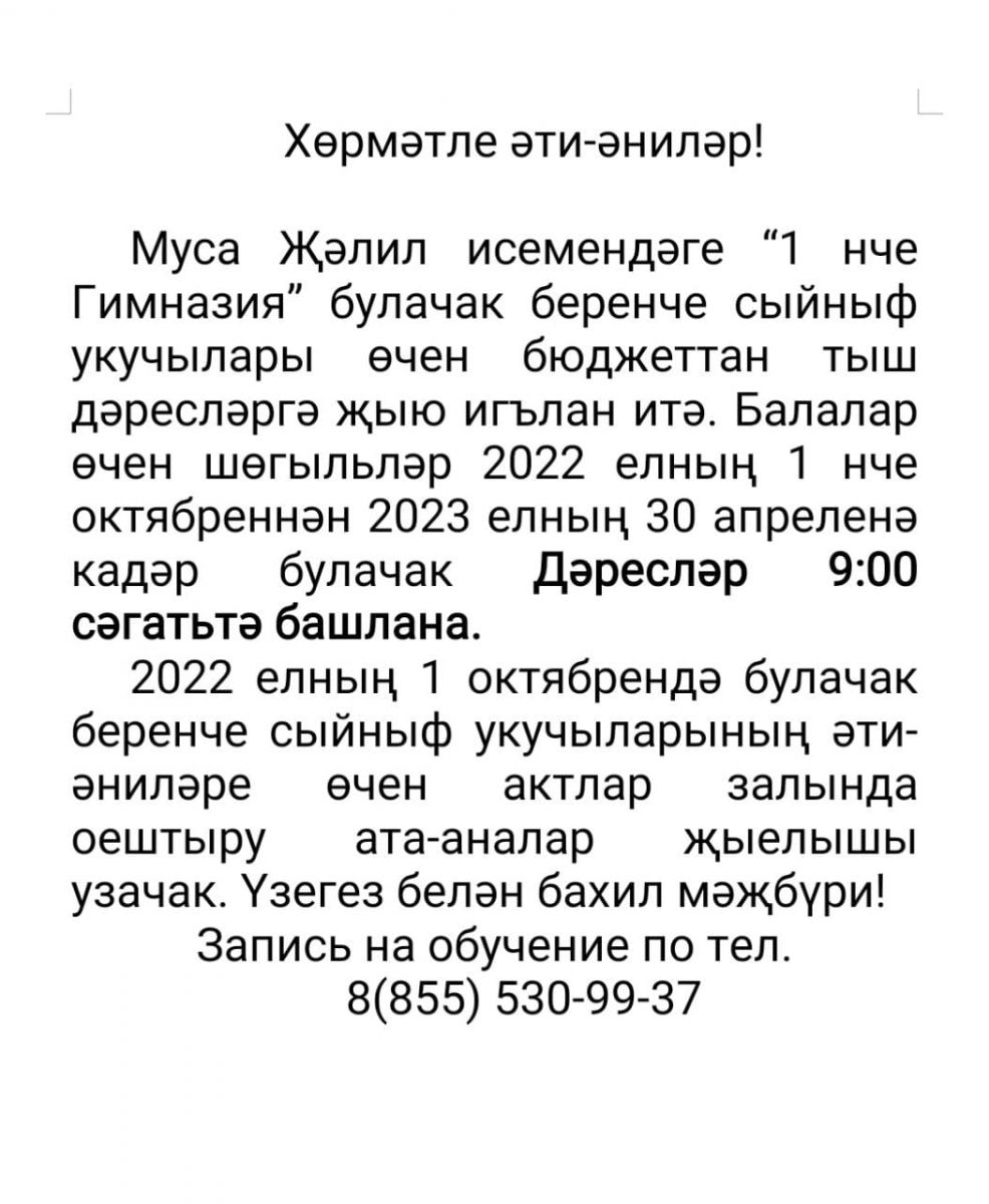 Муниципальное бюджетное общеобразовательное учреждение «Гимназия № 1» имени Мусы Джалиля Нижнекамского муниципального района Республики Татарстан\Татарстан Республикасы Түбән Кама муниципаль районының Муса Җәлил исемендәге “1 нче гимназия” муниципаль бюджет гомуми белем бирү учреждениесе - новости