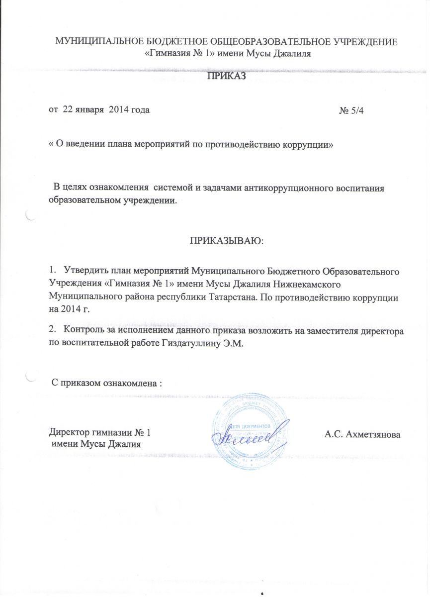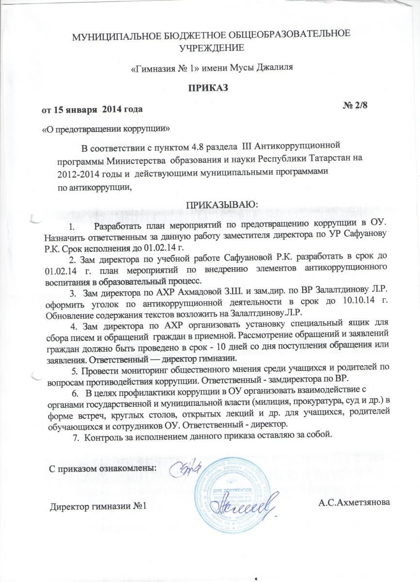 приказ О предотвращении коррупции в гимназии №1.docx
