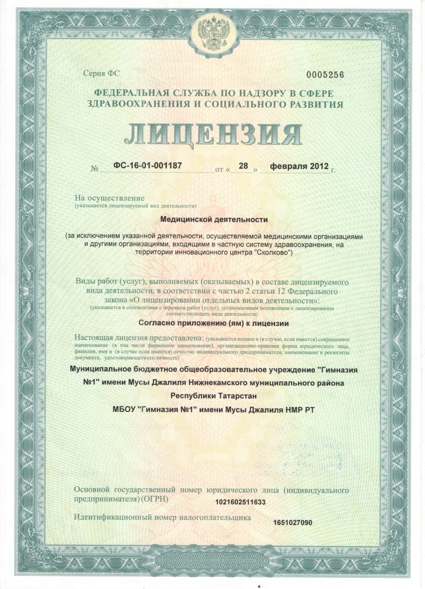 Муниципальное бюджетное общеобразовательное учреждение «Гимназия № 1» имени Мусы Джалиля Нижнекамского муниципального района Республики Татарстан\Татарстан Республикасы Түбән Кама муниципаль районының Муса Җәлил исемендәге “1 нче гимназия” муниципаль бюджет гомуми белем бирү учреждениесе
