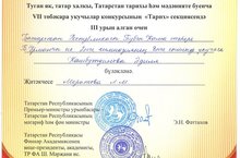 14 майда Казан шәһәрендә узган “Туган як, татар халкы, Татарстан тарихы һәм мәдәнияте буенча VII төбәкара укучылар конкурсы”нда гимназиянең 8 б сыйныф укучысы Кашбутдинова Адилә «Тарих» секциясендә III урынны алды. Укытучысы Моратова Лариса Миншәеховна.
