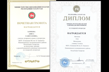Учитель татарского языка и литературы Зарипова А.Г. награждена дипломом министерства образования и науки РТ за подготовку призера.