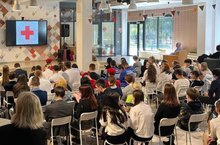 19 нчы сентябрь көнне Түбән Камада "Ковер" яшьләр үзәгендә Россия кызыл крестыннан беренче ярдәм күрсәтү буенча мастер-класс узды. Проект "Татнефть" хәйрия фонды ярдәмендә инициализацияләнде. Олег Евгеньевич мәктәп укучыларына тактик медицина элементлары белән беренче ярдәм күрсәтү ысулларын күрсәтте.Безнең гимназия укучылары әлеге мастер-класстан кызыклы һәм кирәкле мәгълүмат алып кайттылар.