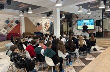 Команда капитаны Марат Ситдиков һәм яклаучы Матвей Филипповский безнең гимназия укучылары өчен класс сәгатьләре үткәрделәр. -