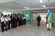 Безнең гимназиябезнең югары сыйныф укучылары, дүшәмбе иртәсен Дәүләт әләмнәренә тигезләнеп, Рәсәй Федерациясе һәм Татарстан Республикасы гимннарын башкару белән башлап җибәрде.