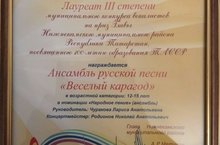 Ансамбль русской песни «Весёлый карагод» стал дипломантом 3 степени в муниципальном конкурсе вокалистов на приз Главы в номинации «Народное пение», руководитель Чуракова Л.А.