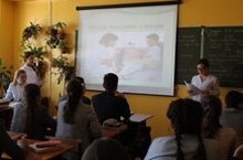 1 марта студенты медицинского колледжа 2 курса группы №9553 Зеленяк Мария, Шайдуллина Алина и Салимова Инзиля (преподаватель Валеева Г.И.) провели с учащимися 8А класса урок-семинар по теме «Пищеварение». Были предложены темы для обсуждения «Красота», «Правильное питание», «Анорексия и ее профилактика». В конце мероприятия девушки рассказали о своем колледже: правилах приёма, специальностях и трудоустройстве. Встреча была полезной для обеих сторон.