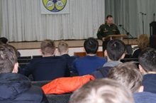 10 февраля состаялась встреча Начальника отделения (подготовки и призыва граждан на военную службу) Файзрахманова Р.В. с родителями и учащимися 11-х классов. Выступление Рината Вакиповича очень широко осветило вопросы призыва граждан на военную службу и продолжения обучения в высших учебных заведениях по военным специальностям.