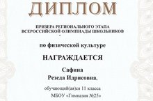 Поздравляем Сафину Резеду, ученицу 11Б класса с призовым результатом на республиканском этапе олимпиады по физической культуре. Спасибо Шабурову Ильясу Рафаиловичу, учителю физической культуры, за отличную подготовку ученицы.