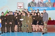 19 февраля в гимназии прошёл традиционный смотр строя и песни, посвящённый 70-летию Великой Победы и Дня защитника Отечества. В смотре-конкурсе принимали участие взводы 9-11-х классов. На мероприятие были приглашены ветеран боевых действий в Чечне, подполковник в запасе Хамидов К.И. и участник боевых действий, сержант Хасанов И. Р., они же строго и беспристрастно оценивали выступления наших ребят. По итогам смотра конкурса все команды были награждены грамотами и сладкими призами.