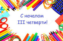 Уважаемые коллеги, родители, ученики! Поздравляем вас с началом третьей четверти! Желаем коллегам - творческих успехов; родителям - терпения; ученикам - хороших отметок и прочных знаний. Всем солнечных дней, крепкого здоровья и отличного настроения!