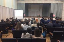 Сегодня в нашей гимназии для учеников 11 класса состоялась встреча с представителем военного комиссариата. Начальник отделения подготовки, призыва и набора на военную службу по контракту отдела военного комиссариата РТ г. Нижнекамска Ринат Вакилович Файзрахманов провел ребятам профориентационную беседу о военных ВУЗах.