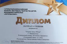 ДИПЛОМ 1 степени - Валиахметова Регина, ученица 10 “А” класса (руководитель: Пузикова Ольга Сергеевна)