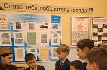 В рамках месячника гражданско - патриотического воспитания юные экскурсоводы гимназии 32 рассказали учащимся 4-х классов о видах военных головных уборов, которые хранятся в музее гимназии.