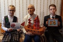 Учащиеся прочли стихи и пожелали ветерану долгих лет жизни, а также вручили памятные подарки, сделанные своими руками.