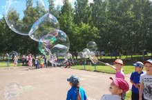 Сегодня, 30 июня, в пришкольном оздоровительном лагере «Солнышко» состоялось закрытие лагерной смены. Удивительное зрелище - фантастическое Шоу мыльных пузырей, стало первой частью закрытия лагеря!!! Гигантские мыльные пузыри, оригинальные и красивые шлейфы из пузырей, иллюзии и волшебство!!! Для подготовки к празднику ребята раскрыли секрет раствора для мыльных пузырей и запаслись необходимыми предметами для их создания.