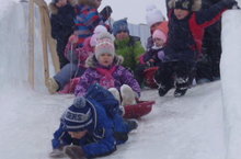 Кто с картонкой, кто на санках,