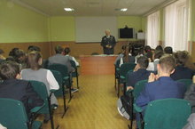 В своем выступлении он рассказал ребятам о том, насколько важно получить военную профессию до службы в армии. Старшеклассники узнали, какие рода войск, оружие и техника существуют в современной российской армии. В завершении встречи были показаны отрывки из военных фильмов. Выступление Сергея Погодина очень заинтересовало школьников.