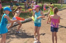 20 июня в лагере "Солнышко" прошёл настоящий морской бой. Ребята вместе с вожатыми устроили водную битву. Вооружившись водными помпами, пластиковыми бутылками и даже тазиками с водой, они веселились вовсю, щедра поливая друг друга. К сожалению, морской бой длился не так долго, как нам бы хотелось. А после "баталии" жаркое солнце быстро высушило одежду ребят!