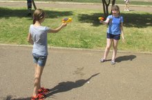 23 июня в старших отрядах пришкольного лагеря зам. начальника пришкольного лагеря Ушакова Л.В. организовала подвижные игры на свежем воздухе. Дети играли в боулинг, вышибалы, различные игры с мячом.