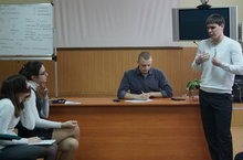 На два часа конференц-зал гимназии №32» стал площадкой для выяснения отношений. 2 команды учащихся 10 А класса и студенты ИЭУП доказывали свою правоту в рамках интеллектуальной деловой игры «Дебаты». Цель молодых ораторов – победа в аргументированном, цивилизованном споре на заданную тему. Активными зрителями игры стали учащиеся 7Б, 8 А, 8Б классов. Ребята на игре впервые, поэтому студенты ИЭУП объяснили, как грамотно выступать на публике, и аргументировано доказывать свою позицию.
