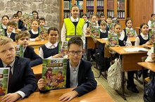 Сегодня волонтеры гимназии 32 и члены отряда ЮИД вручили пятиклассникам «Дневники безопасности».