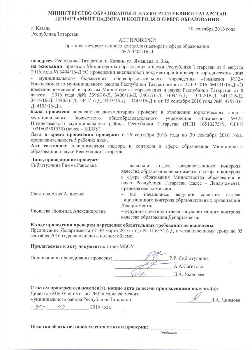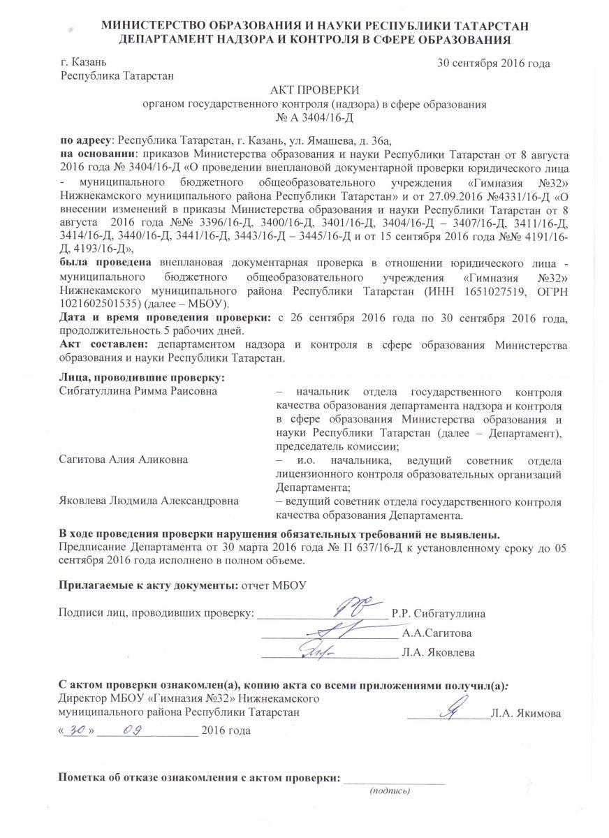 Акт проверки по итогам предписания