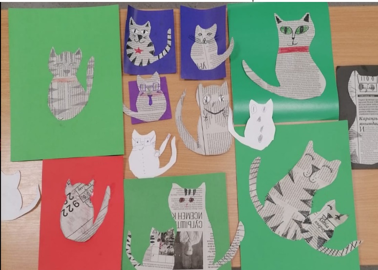 В ходе занятия ученики узнали новые, интересные факты о вторсырье, до сих пор им неизвестные, рассмотрели способы переработки, дальнейшие пути переработки. Ребята посмотрели фильм о переработке отходов и в конце занятия сделали поделку-аппликацию "Котик" из старых газет.