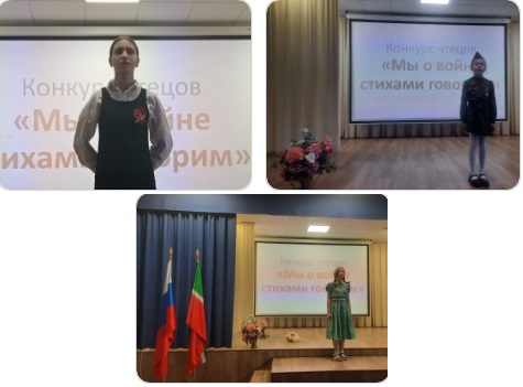 В исполнении ребят прозвучали стихи таких именитых поэтов, как К. Симонов, Э.Асадов, М. Джалиль, Р. Казакова, Ев. Евтушенко и др.