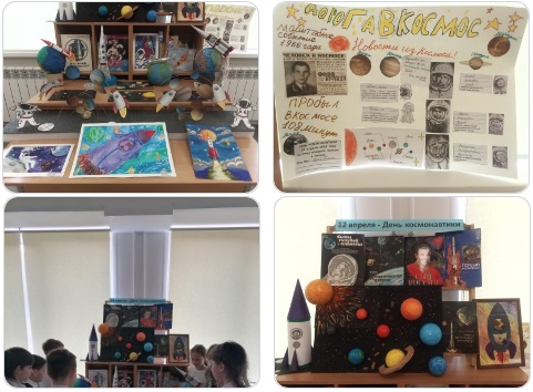 В преддверии Дня космонавтики в библиотеке была организована выставка книг, детских поделок и рисунков.