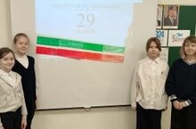 Чара барышында укучылар флаг турында әңгәмәне тыңлап кына калмадылар, ә актив викторина сорауларына актив җавап бирделәр. Чара ахырында Татарстан Республикасы флагы рәсемен ясадылар.