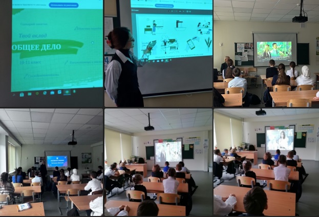 В рамках проекта " Разговоры о важном " в школе прошли классные часы на тему " Твой вклад в общее дело".Урок посвятили личному вкладу каждого человека в развитие страны и улучшение жизни общества.