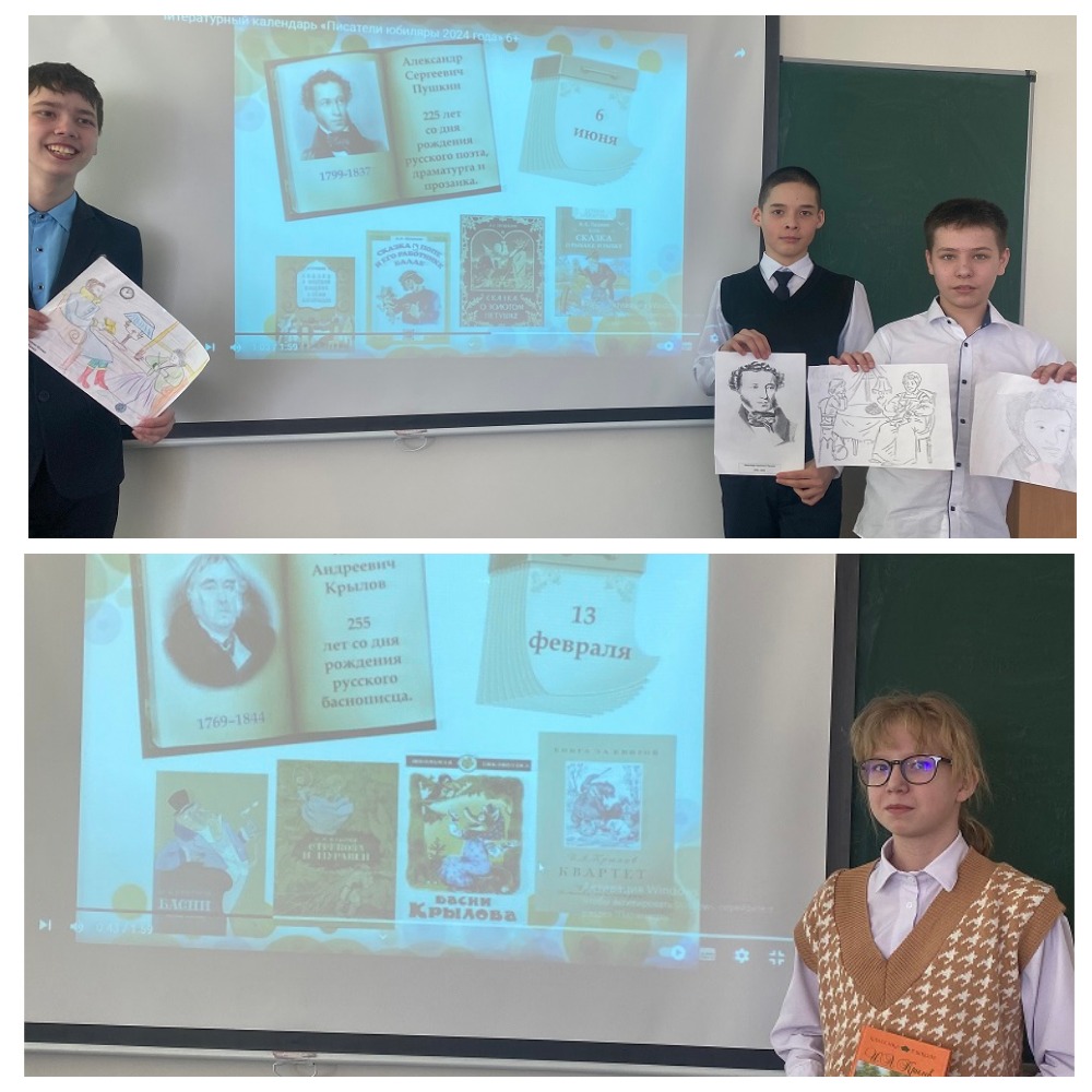 Сегодня учитель русского языка и литературы,Швецова Д.С., провела в 7 «Б» классе литературный час «Писатели юбиляры».