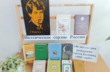 В рамках празднования дня рождения поэта в школьной библиотеке оформлена выставка "Поэтическое сердце России". -