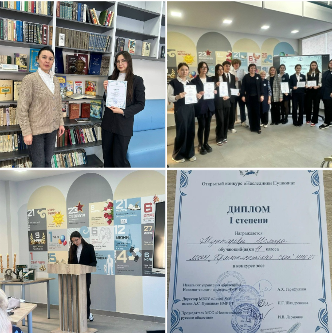 Поздравляем Мухтарову Исмиру, ученицу 11 класса, с 1 местом в Открытом конкурсе эссе «Наследники Пушкина».Участие в подобных конкурсах дает нашим школьникам уникальную возможность продемонстрировать свои умения и навыки, укрепить уверенность в собственных силах и развить творческий потенциал.
