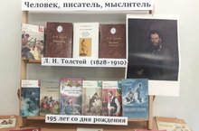 В нашей библиотеке открылась книжная выставка "Человек, писатель, мыслитель", посвящённая 195-летию великого русского писателя Льва Николаевича Толстого.