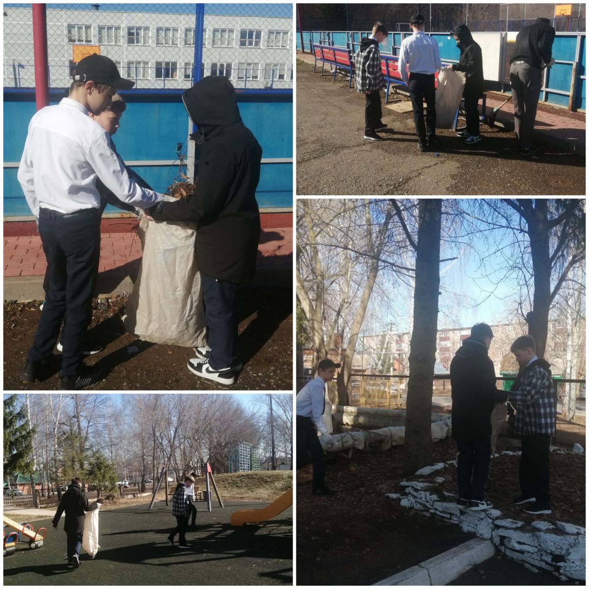 Обучающиеся очистили всю территорию школы перед проведением спортивно-оздоровительной акции "10 тысяч шагов". -