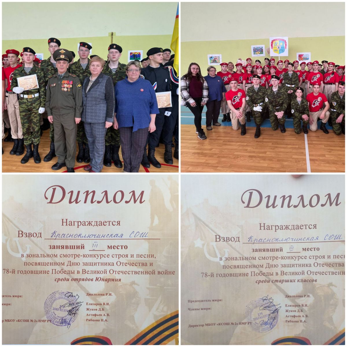 Сегодня в пгт Камские Поляны прошел зональный смотр-конкурс строя и песни, посвящённый Дню защитника Отечества и 78-й годовщине Победы в Великой Отечественной войне. Нашу школу представляли взвод Юнармии и взвод обучающихся старших классов. Поздравляем оба взвода с 3 местом.