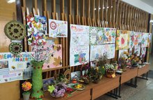 В холле школы была организована выставка конкурсных работ учащихся в рамках проведения патриотическо-познавательной недели «Я - Нижнекамец».