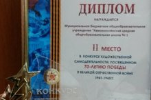 Поздравляем коллектив школы со II местом в конкурсе художественной самодеятельности, посвященном 70-летию Победы в Великой Отечественной войне 1941 – 1945 гг. и выражаем благодарность организаторам и участникам выступления.
